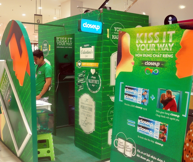 Từ việc nắm bắt và thấu hiểu mong muốn của các cặp đôi về một nơi chốn thực sự “riêng tư” để tự tin thể hiện nụ hôn cũng như lưu dấu ấn tình yêu của riêng mình, “đại sứ tình yêu” Closeup đã mang đến cho chúng ta một món quà cực bất ngờ lần đầu tiên có mặt tại Việt Nam: Kissing Booth. Đây là một bốt chụp ảnh công cộng mà khi vào bên trong, các bạn trẻ có thể thoải mái hôn nhau theo đủ cách “tình củm” hay… lạ đời nhất mà chẳng sợ bị ai nhòm ngó hay bàn tán. Đó có thể là nụ hôn nồng nàn kiểu Pháp hay nụ hôn chạm mũi Eskimo ngọt ngào...